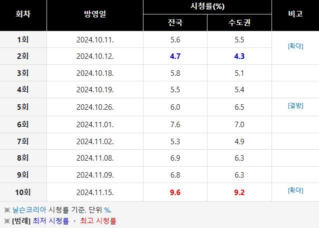 해당 드라마에서는 연기력이 뛰어난 배우님들의 노고로 이루어진 결과인지 드라마 종영도 성공리에 이루어졌는데, 마지막 회도 최고 시청률을 기록했습다.