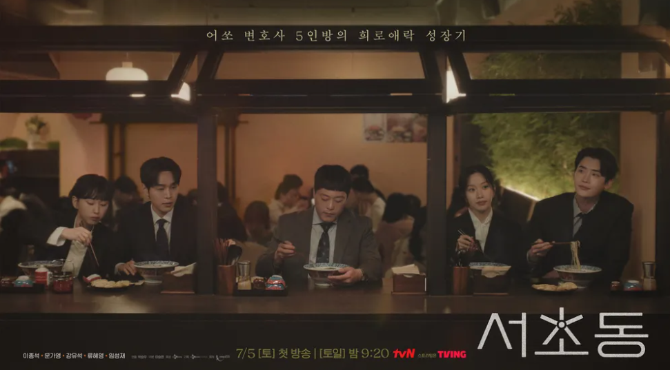 〈서초동〉은 서울 서초동 법조타운을 배경으로 ‘어쏘(Associate Lawyer)’라 불리는 평범한 로펌 소속 변호사 5인방의 일상과