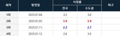 - 방송 기간 : 2025년 1월 4일 ~ 2025년 2월 23일 (예정)
